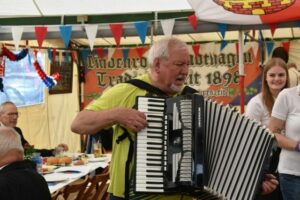 Die nächste Überraschung stand dann plötzlich mit seinem Akkordeon im Zelt. Unser Uwe Meier fühlte sich wieder fit genug, seine Jungs in musikalische Stimmung zu versetzen! Wie immer gelang ihm das nach nur ganz wenigen Tönen aus seinem Instrument.